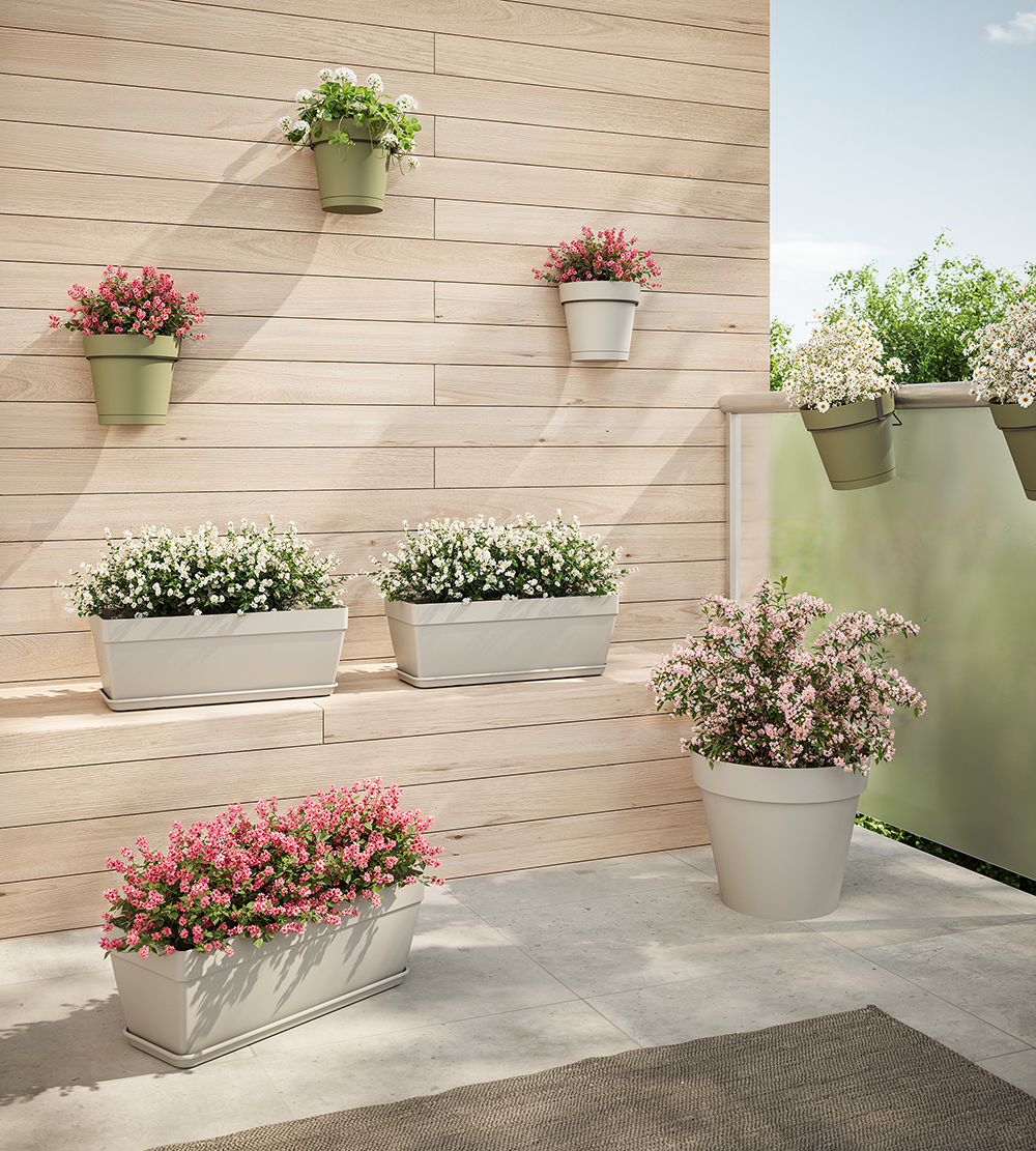 A classic that never goes out of fashion. Inspired by the natural beauty of the Italian island of Capri, this range recaptures the essence of the terracotta pots' shape, providing a perfect harmony between classic silhouettes and modern looks. The Capri range features various models and colours for all styles and contexts, from balcony and wall solutions to orchid pots and water reserve pots. It also offers various sizes, from pots for smaller plants to large and very large plants (pots up to 1 metre high). Produced using recycled material, the Capri range is a strong trend that is essential in any shop.