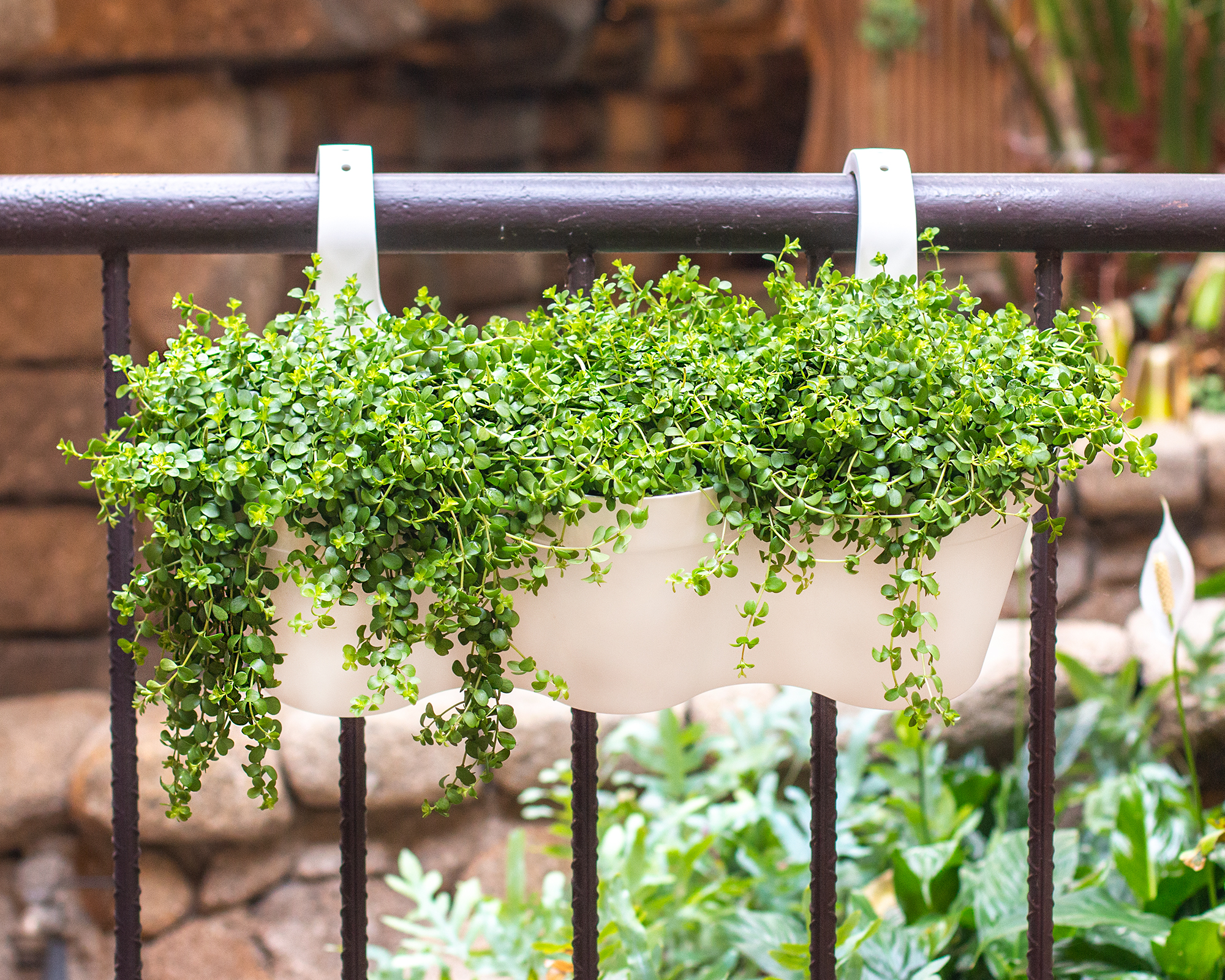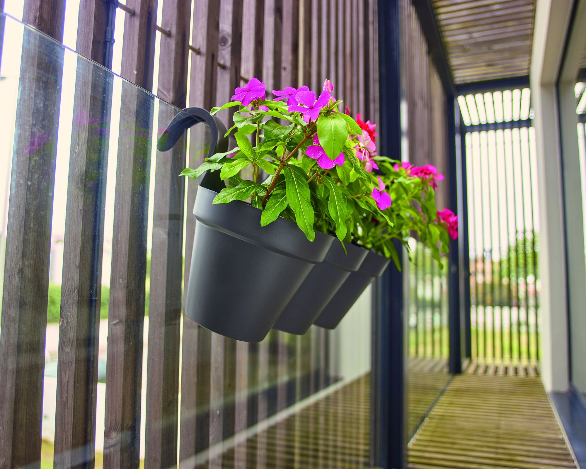 Triple recycled plastic pot for the balcony, made from polypropylene. Lightweight, durable, recyclable and reusable, with UV protection, frost-proof and drainage holes. Suitable for balconies, with a capacity of 11 litres. Made in Portugal.